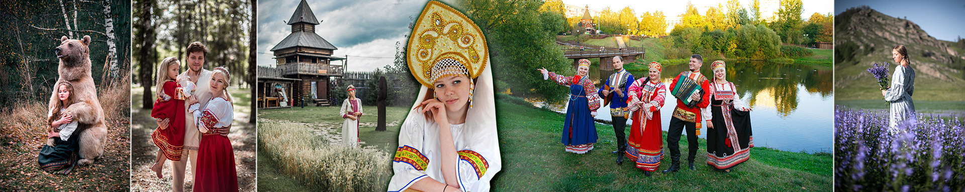 Для женщин мы приготовили разноцветные сарафаны, рубахи с вышивкой и узорчатой окантовкой, свободные, ниспадающие в пол, расшитые платья. Дополнить образ русской красавицы можно романтическим кокошником с бисерным очельем. Представителям сильного пола мы предлагаем фольклорные косоворотки, подпоясанные кушаком, мужские порты и молодецкие картузы с ярким цветком на околыше.