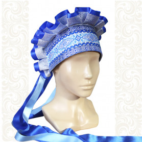 Сзади кокошник завязывается широкими лентами-крыльями из парчи. Высота кокошника - 14 см.
