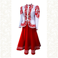 Выполненный в православном стиле сарафан с блузой «Дуняша» сшит из натурального хлопка в цветочек. Модель скромно декорирована однотонным воланом в цвет с основной тканью и тесьмой вьюнок. Можно носить под пояс и регулировать бретели по длине. Белая блузка из хлопка с длинным рукавом расшита натуральным нежным кружевом.
