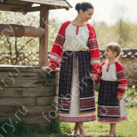 Материалы: лен, жаккардовая тесьма с обережными символами