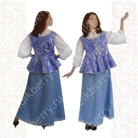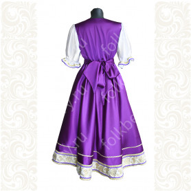 Фасон: Юбка – почти солнце, длиной чуть ниже колена, завышенная талия, рукав реглан, регулируемая горловина, пояс в комплекте.