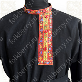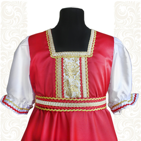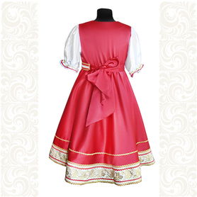 Платье «Дмитра» - современное прочтение славянских традиций. Платье четкого силуэта, чуть ниже колена, чистого яркого цвета. Платье отрезное по талии, длинный рукав-реглан, регулируемая горловина, юбка "почти солнце", с поясом. Для платья подобран эффектный декор -  солярные славянские знаки.  Платье сшито из габардина, ткани, которая не блестит и не мнется, всегда выглядит аккуратно, ярко, празднично, романтично.