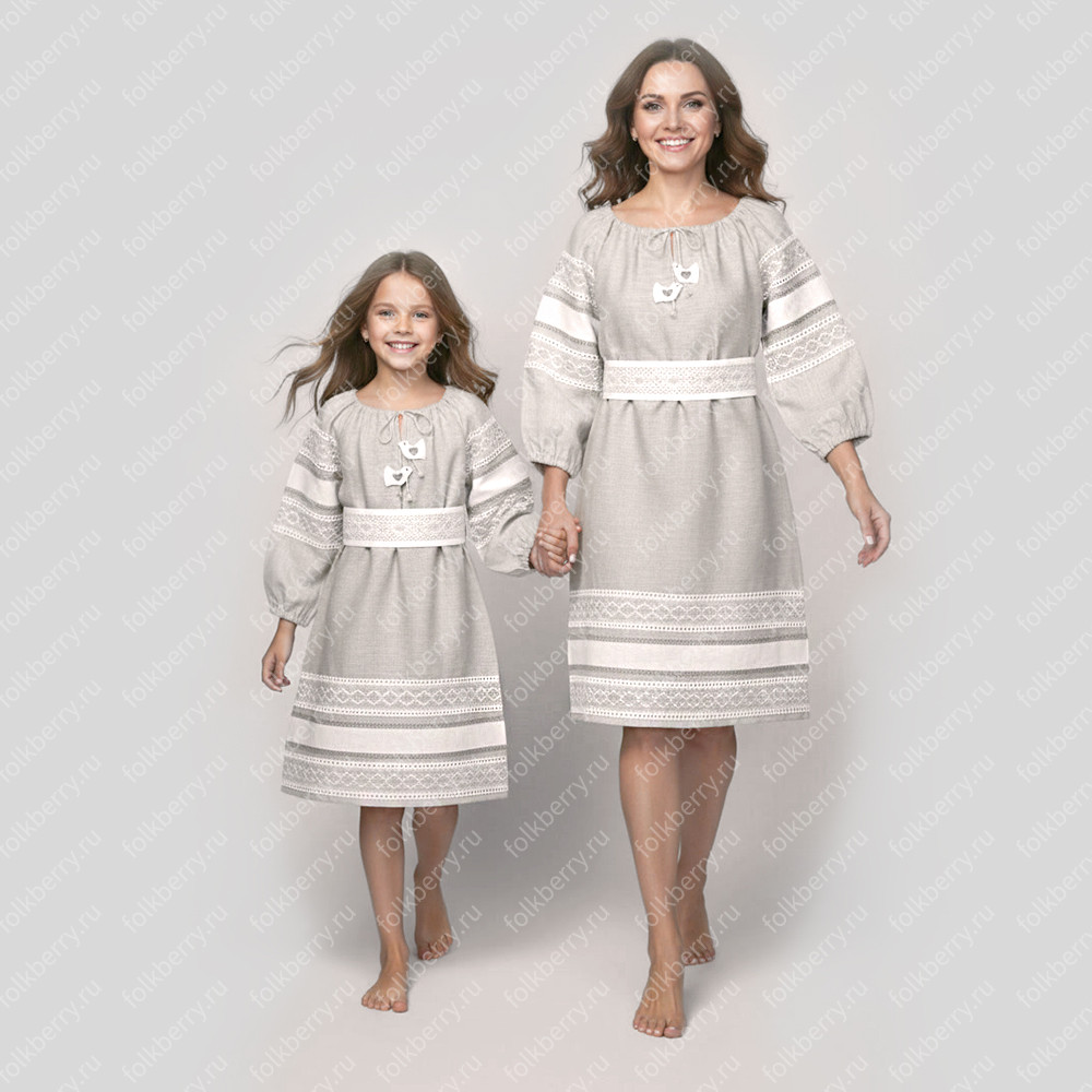 Платье «Верея» выполнено из натурального, умягченного льна. Платье А-силуэта, имеет регулируемую горловину, удобный рукав реглан. К платью прилагается широкий пояс, украшенный кружевом. По рукавам и низу платье декорировано широким бордюром из нескольких видов натурального кружева из хлопка, машинной вышивкой и вставками из белого льна. Платье комфортно, смотрится очень мило и женственно. Хорошо сидит на разного вида фигурах, в том числе на крупной и полной фигуре. Платье можно надевать как с поясом, так и без. Пояс можно надевать с другими изделиями ( например, блузой)
