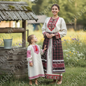 Материал: лен – 70%, хлопок – 30%. Ткань отличается хорошей плотностью, качеством, красивым цветом. Возможен комбинированный вариант, дополненный другим цветом и машинной вышивкой.