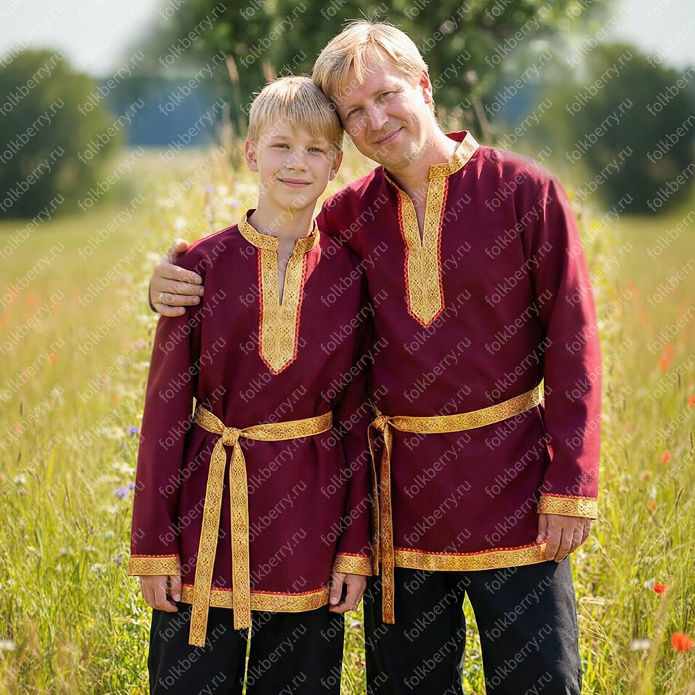 Данная модель привлекает внимание сочным бордовым цветом и благородным, тканным орнаментом на груди. Рубаха «Молодецкая» выполнена из натурального, плотного, умягченного льна. Хороший, оригинальный подарок важному для Вас человеку. В комплекте имеется пояс. По индивидуальному заказу можно подобрать порты.