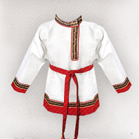 Рубаха Истоки, небеленый лен с красным