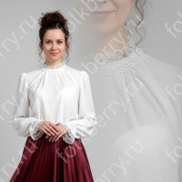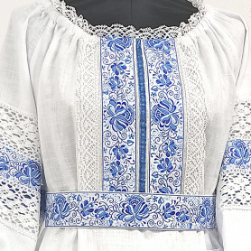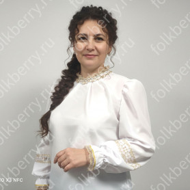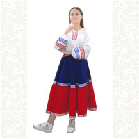 Выполненный в православном стиле сарафан с блузой «Русь» сшит из натурального хлопка в цветочек. Модель скромно декорирована однотонным воланом в цвет с основной тканью и тесьмой вьюнок. Можно носить под пояс и регулировать бретели по длине. Белая блузка из хлопка с длинным рукавом расшита натуральным нежным кружевом.