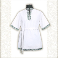 Длинный сарафан с блузой нежных пастельных тонов "Бирюзинка" выполнен в традиционном славянском стиле. Голубой цвета - одни из любимых русскими девушками. Cарафан и блуза выполнены из хлопка и украшены жаккардовой тесьмой в синих тонах. Бретели сарафана регулируются по длине.