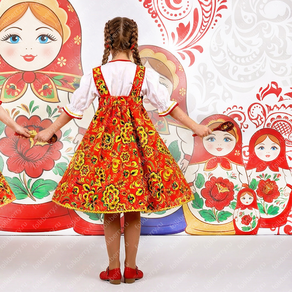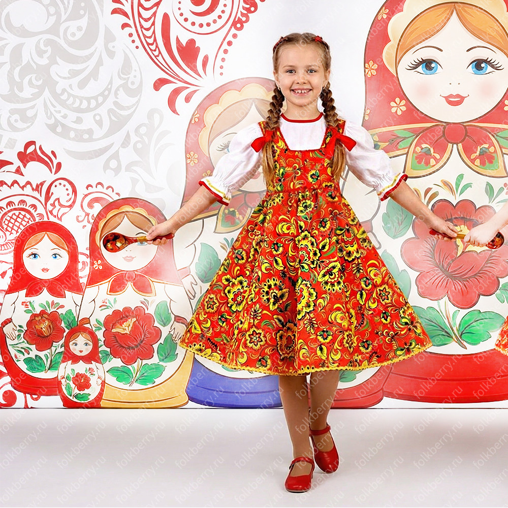 Сарафан с блузой "Хохломские розы" смотрится очень ярко, празднично и подойдет для активных народных танцев.
