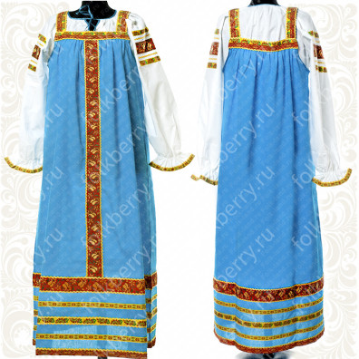 Сарафан с блузой Народный, габардин и хлопок, голубой