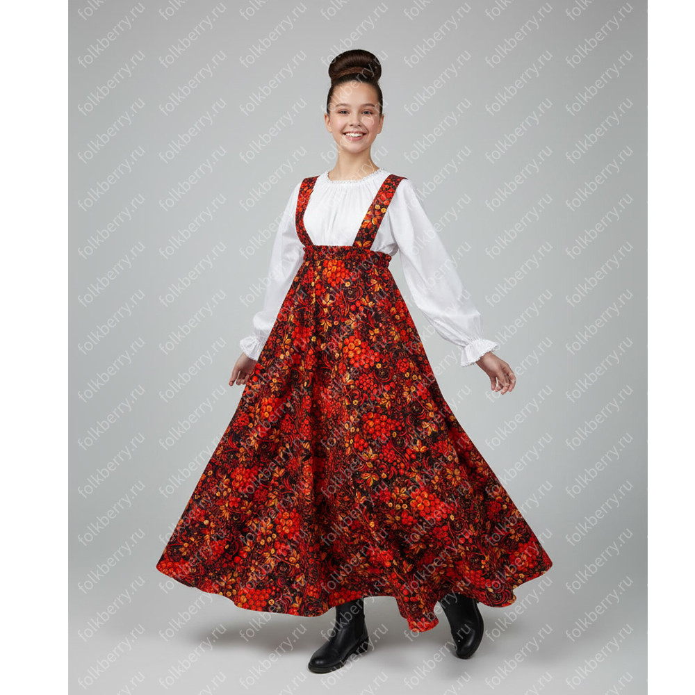 Сарафан с блузой "Рябинушка" смотрится очень ярко, празднично и подойдет для активных народных танцев.
